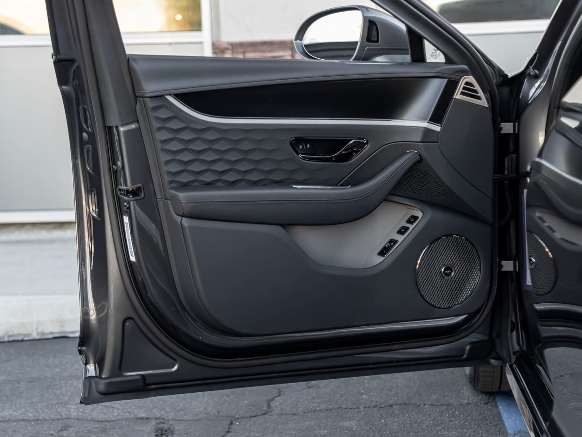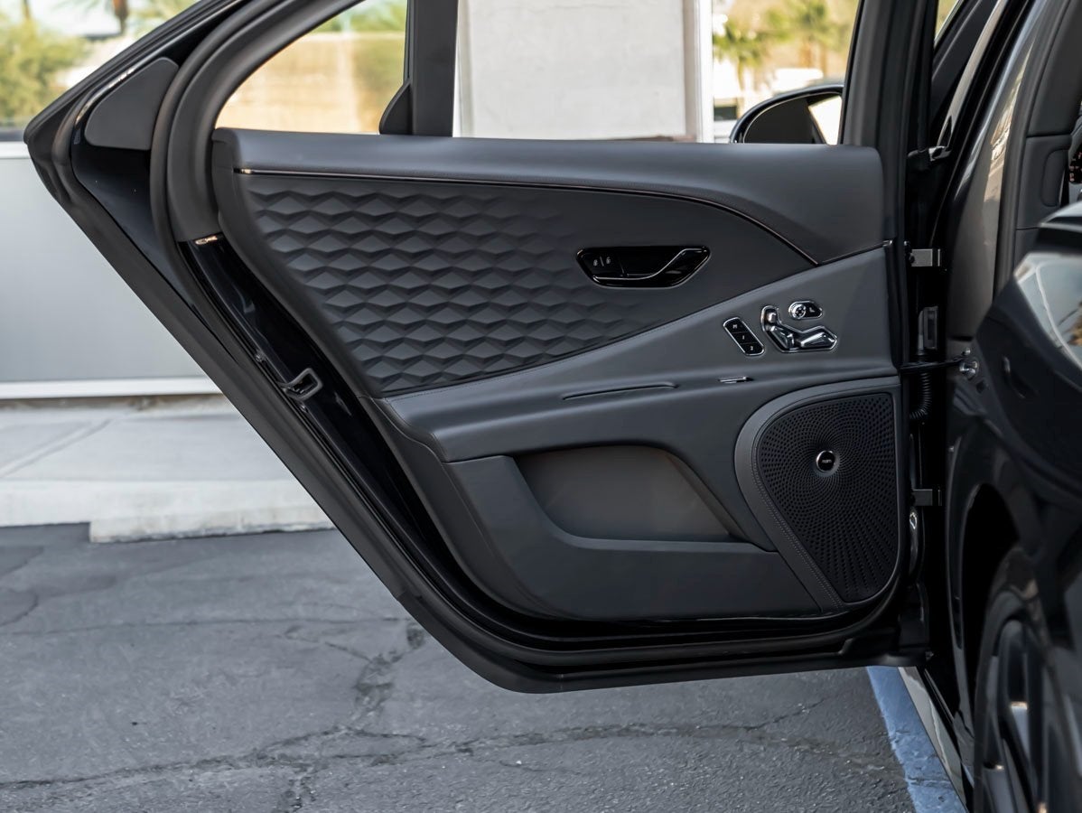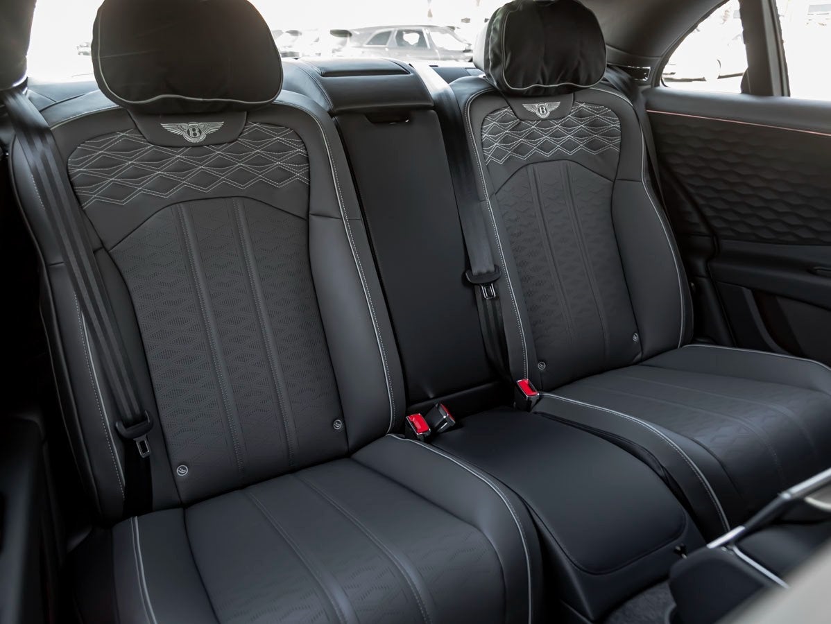 The Flying Spur Speed makes a striking impression with the Paint Fade Collection, 22 10-Swept Spoke Black Painted Wheels, and the dramatic Flying Spur Blackline Specification. The iconic Illuminated Flying B in Black Gloss, Bentley Wings Welcome Lamps, and Self-Leveling Wheel Badges by Mulliner provide refined finishing touches.