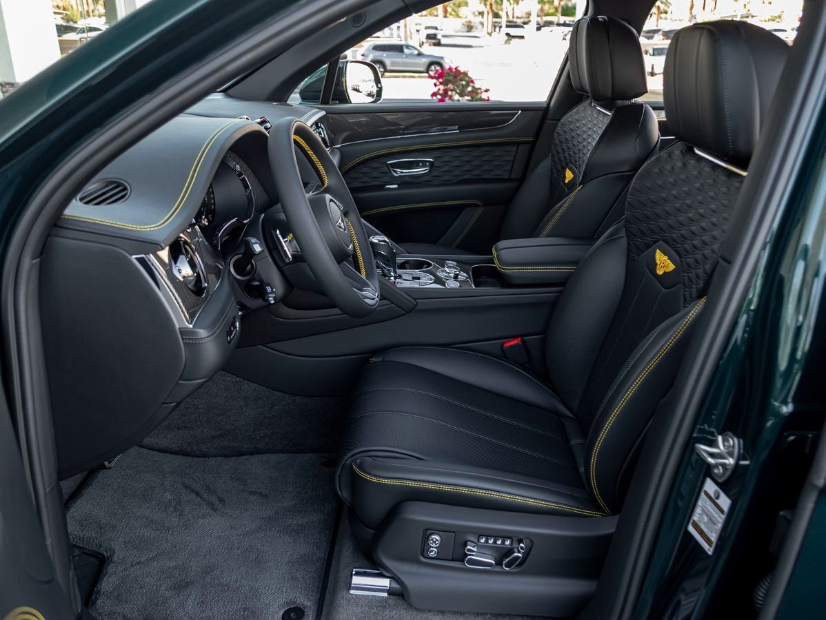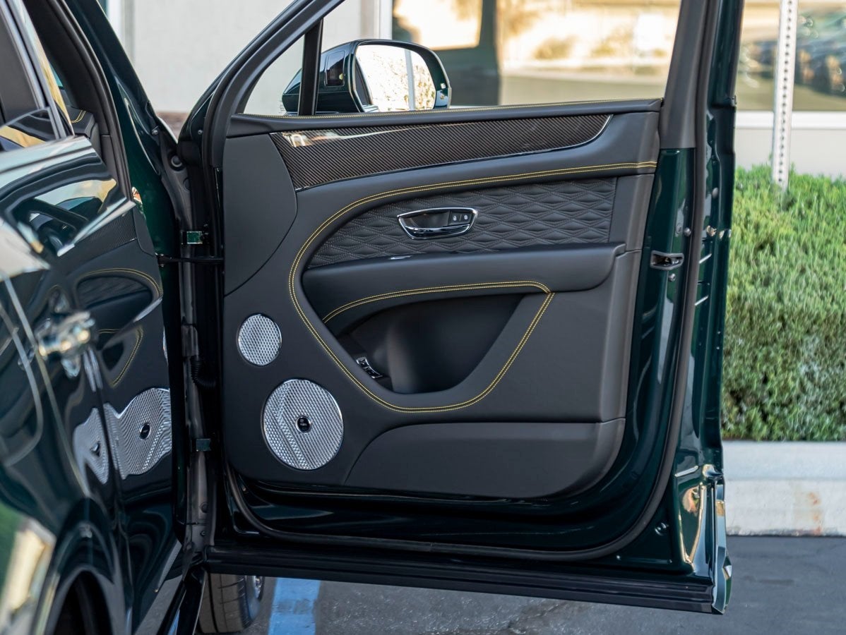 The Bentayga Speeds bold Viridian finish highlights its muscular proportions and athletic design, further elevated by the Dynamic Specification and striking 23 Black Painted Wheels. The Bentayga Blackline Specification adds a stealthy edge, while details such as the Self Leveling Wheel Badge by Mulliner, LED Welcome Lamps, and Rear Acoustic Privacy Glass reinforce both exclusivity and everyday usability. The Mulliner Range Solid & Metallic and Mulliner Colour Specification underscore Bentleys renowned bespoke capabilities.