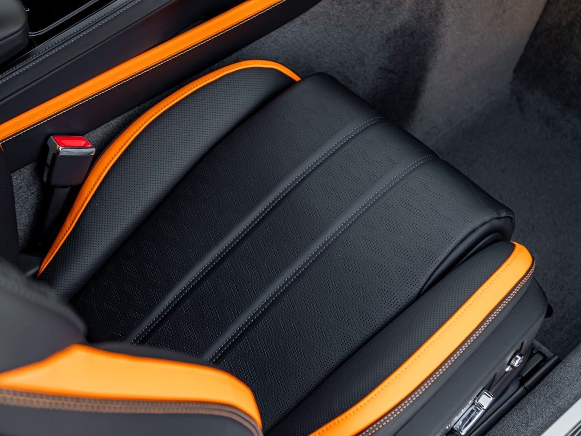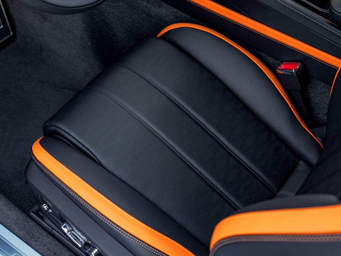 Step inside and the Black and Mandarin interior delivers an immersive luxury experience. Premium hides and the Leather Specification are complemented by the Dark Chrome Interior Specification and exquisite Contrast Stitching. The cabin ambiance is enhanced by the Mood Lighting Specification and the remarkable Bentley Rotating Display, seamlessly blending modern technology with traditional craftsmanship. Comfort is paramount thanks to the Front Seat Comfort Specification, Touring Specification, and plush Deep Pile Overmats Front, ensuring every journey is as indulgent as it is exhilarating.