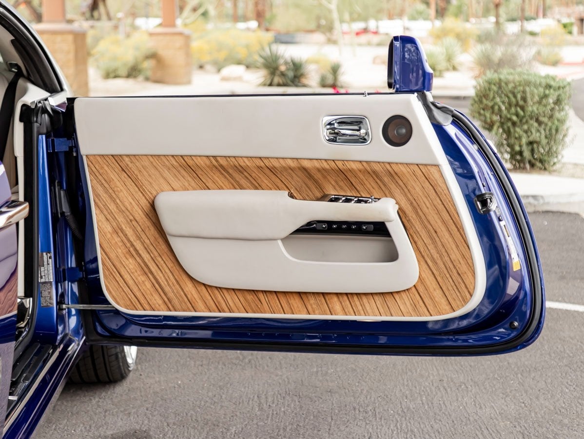 Inside, the cabin is a true sanctuarymeticulously crafted and richly appointed. The Seashell and Navy Blue color combination creates a striking contrast, enhanced by Contrast Stitching and a richly tailored Bespoke Interior. The iconic Starlight Headliner transforms each evening drive into an unforgettable experience, while indulgent touches like Lambswool Footmats, RR Monogram to All Headrests, and Color Keyed Boot Trim underscore the Wraiths unmatched attention to detail. Finishing the ambiance is the exquisite Canadel Paldao wood trim, adding warmth and distinction throughout the cabin.