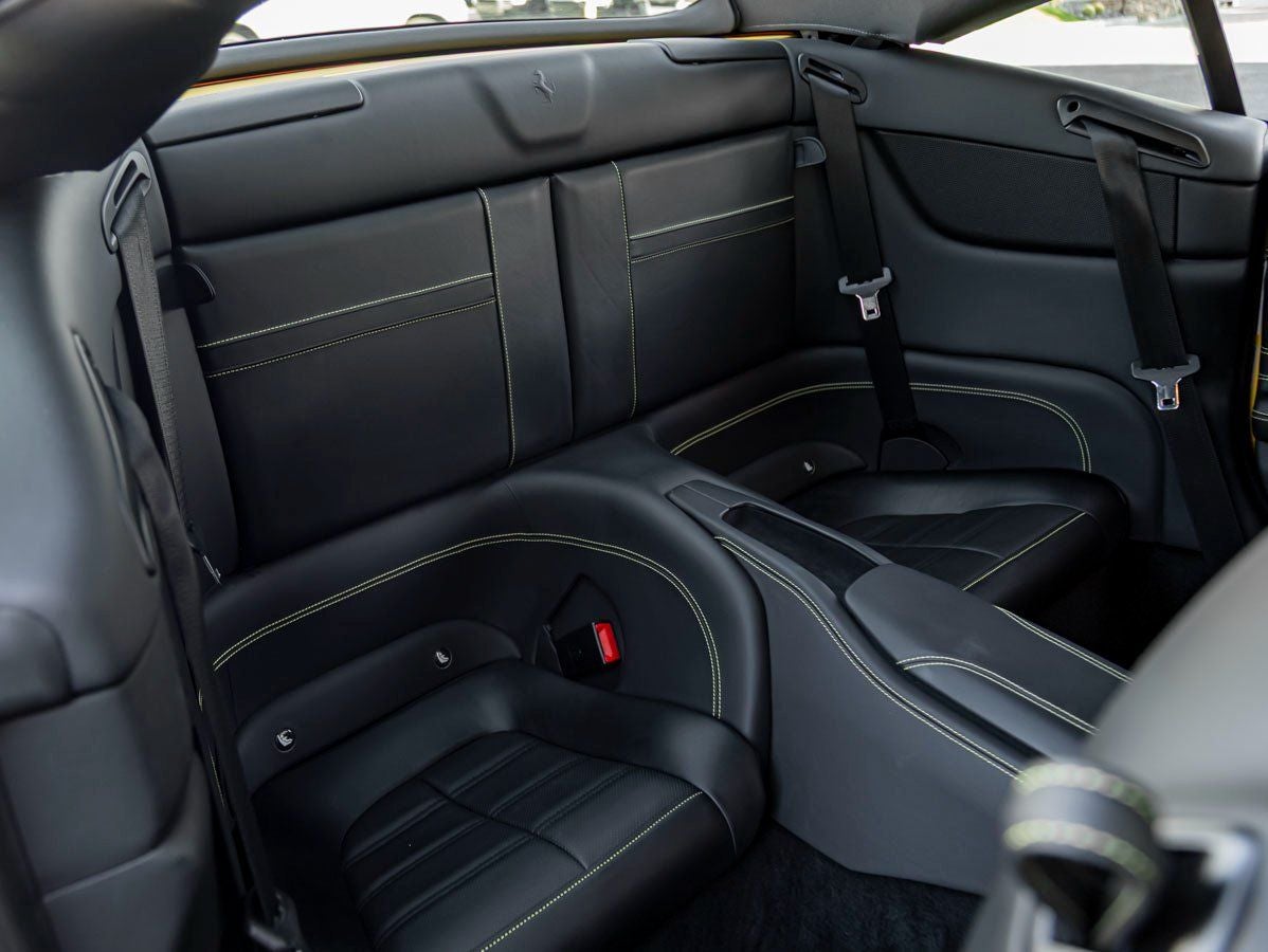 Inside, the Black cabin is a harmonious balance of sport and luxury. Ventilated Full Electric Seats provide exceptional comfort and adjustability, making every drive as enjoyable as it is thrilling. The Horse Stitched on Headrest and Colored Special Stitching showcase Ferraris meticulous attention to detail and bespoke craftsmanship. A distinctive Yellow Rev Counter adds a vibrant motorsport-inspired touch to the driver-focused cockpit, while the Foldable Rear Seat Backrest enhances practicality for grand touring adventures.