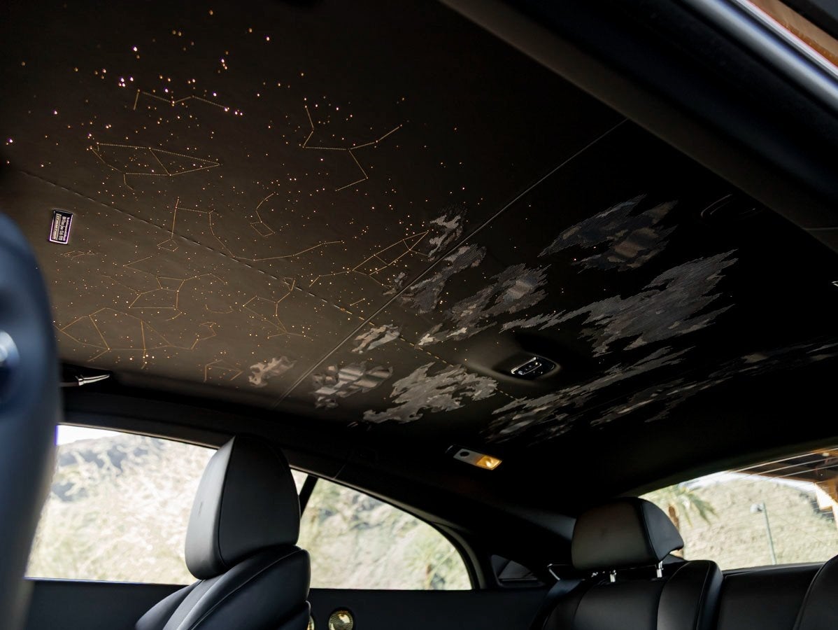 Step inside to experience a sanctuary of handcrafted luxury. The Selby Grey leather interior is complemented by Rolls-Royce embossed headrests, an instrument panel with refined top-stitch detailing, and indulgent lambswool footmats. Additional bespoke touches include a VIN plate and a leather-lined black boot floor, subtle reminders of the vehicles exclusivity. Front ventilated seats ensure exceptional comfort for both driver and passenger.