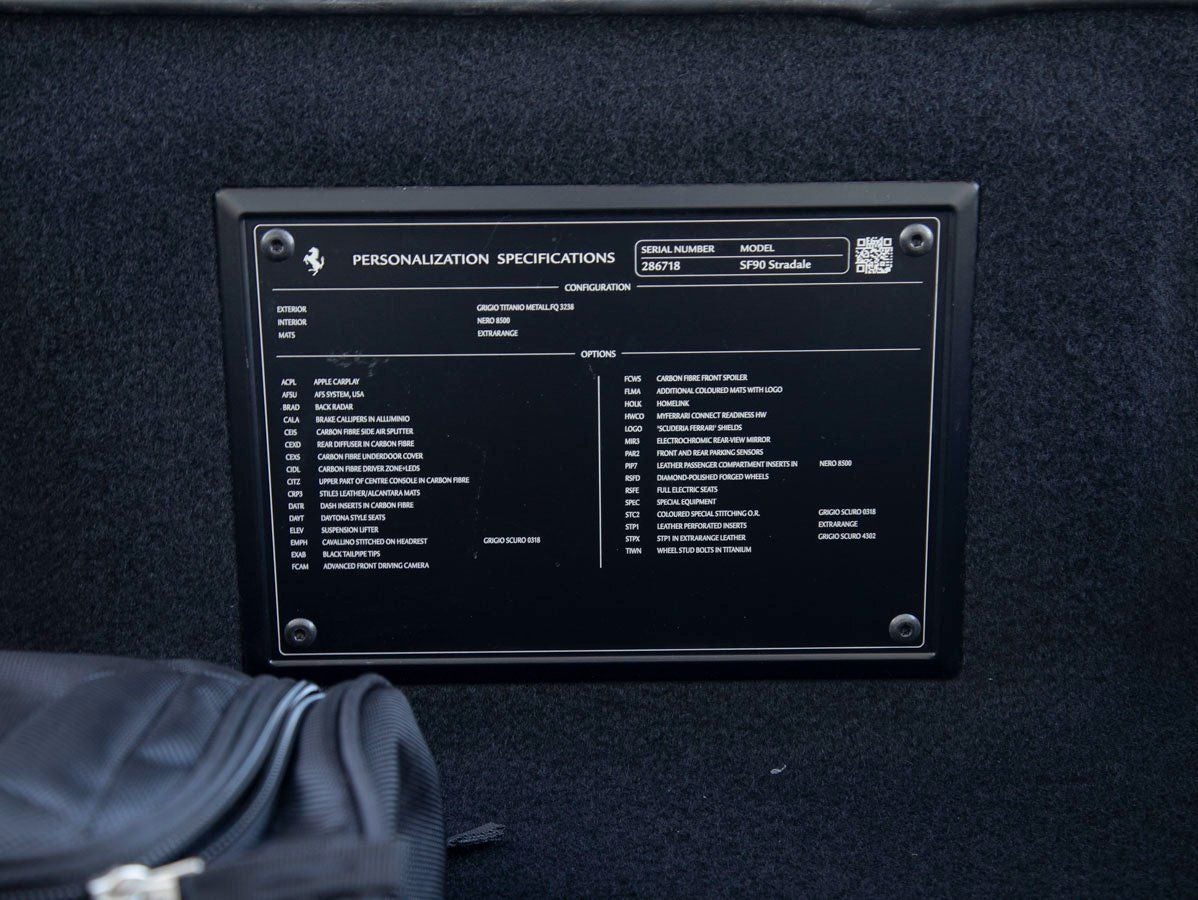 Equipped with a Suspension Lifter, this example offers added practicality for navigating varying road conditions, while maintaining its uncompromising performance capabilities. This is Ferrari engineering at its most advancedbridging the gap between road and track with breathtaking precision.