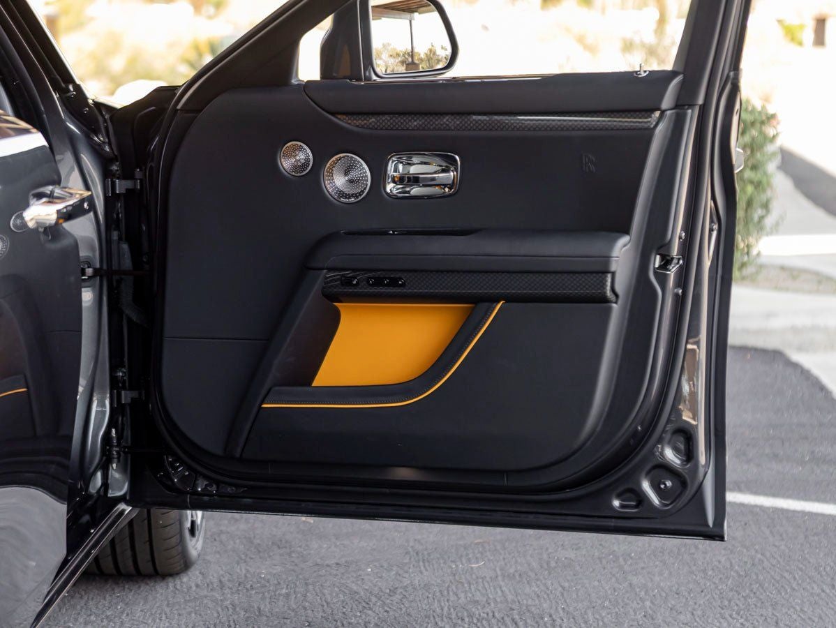 Inside, the cabin is a masterclass in bespoke craftsmanship. The vibrant Forge Yellow interior is beautifully contrasted by Secondary Interior Color Black, creating a striking yet refined atmosphere. The Black Badge Ghost Package elevates the experience with Lambswool Footmats, RR Bespoke Audio, and a luxurious Rear Theater Configuration for unparalleled passenger enjoyment.