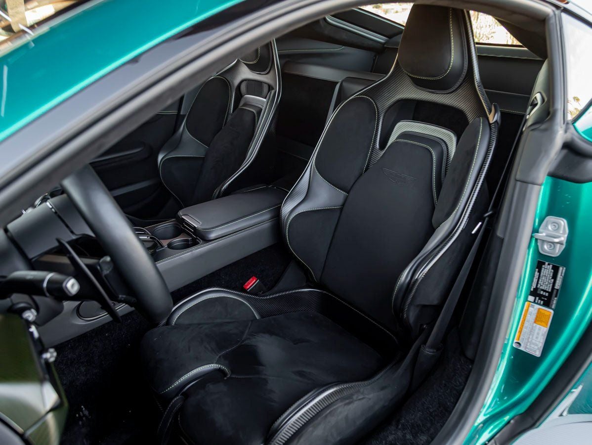 Step inside to a cabin meticulously appointed in Onyx Semi-Aniline Leather, elevated by the refined textures of Contemporary Alcantara and matching contemporary leather and carpet tones. The Leather Headlining envelops the interior in tailored luxury, while Headrest Embroidery featuring the Aston Martin Wings serves as a proud reminder of the brands legacy.